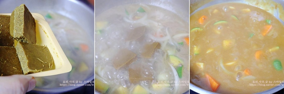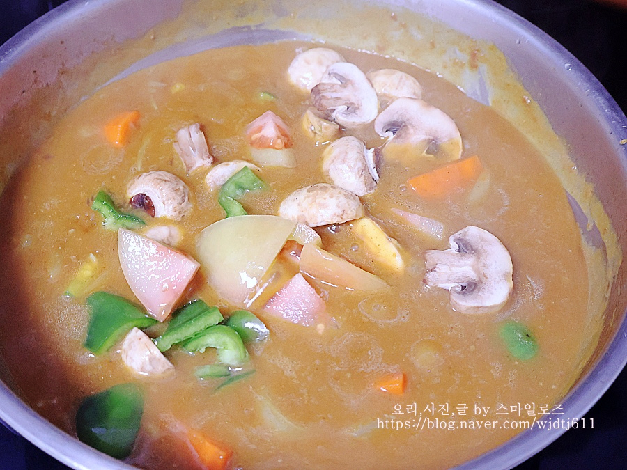 고형 카레 매운맛으로 4조각 넣고 끓여주면서