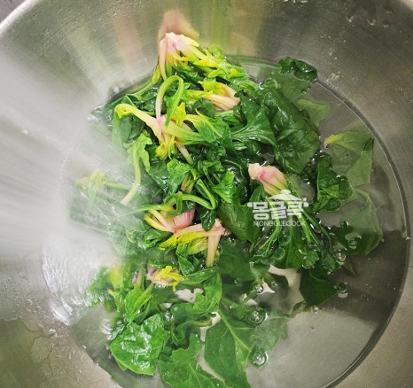 데친 후에는 바로 찬물에 헹궈 잔열을 없애주세요.