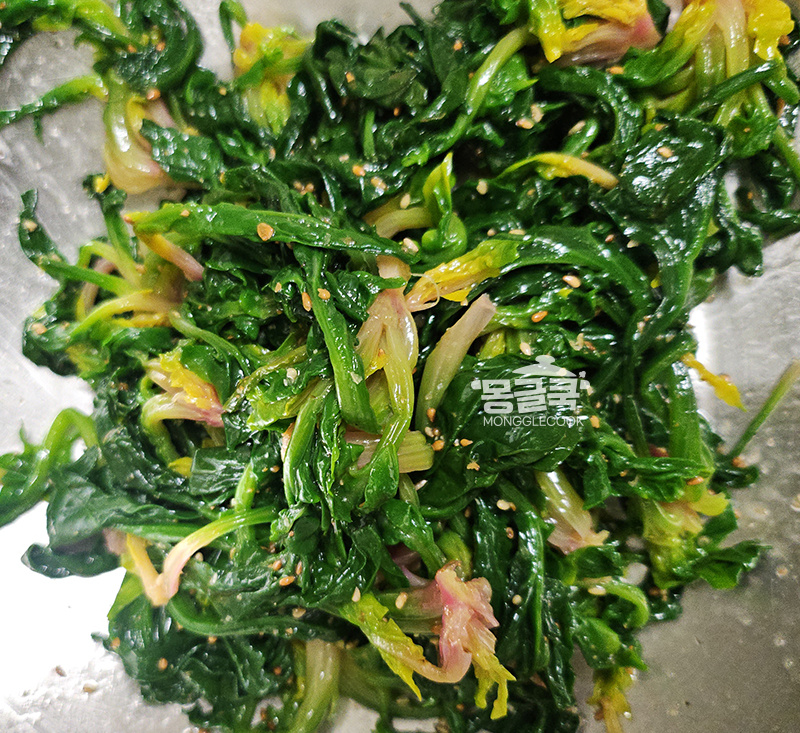 무침의 마지막은 들기름 1.5큰술과 깨소금 1큰술을 넣어 마무리해 주세요.