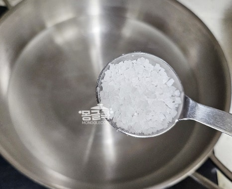 물을 팔팔 끓인 뒤 소금 1큰술을 넣어주세요.