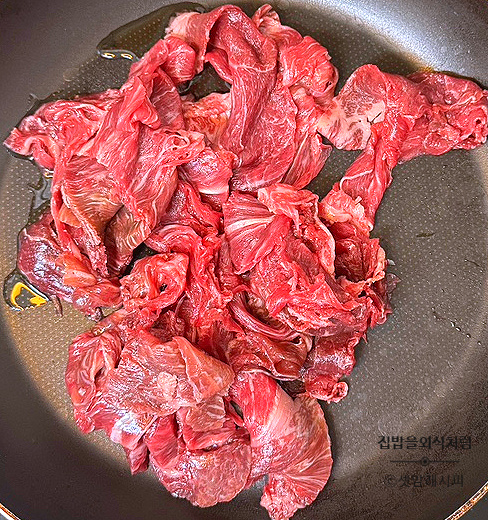 -기름에 고기 먼저 볶아주세요.