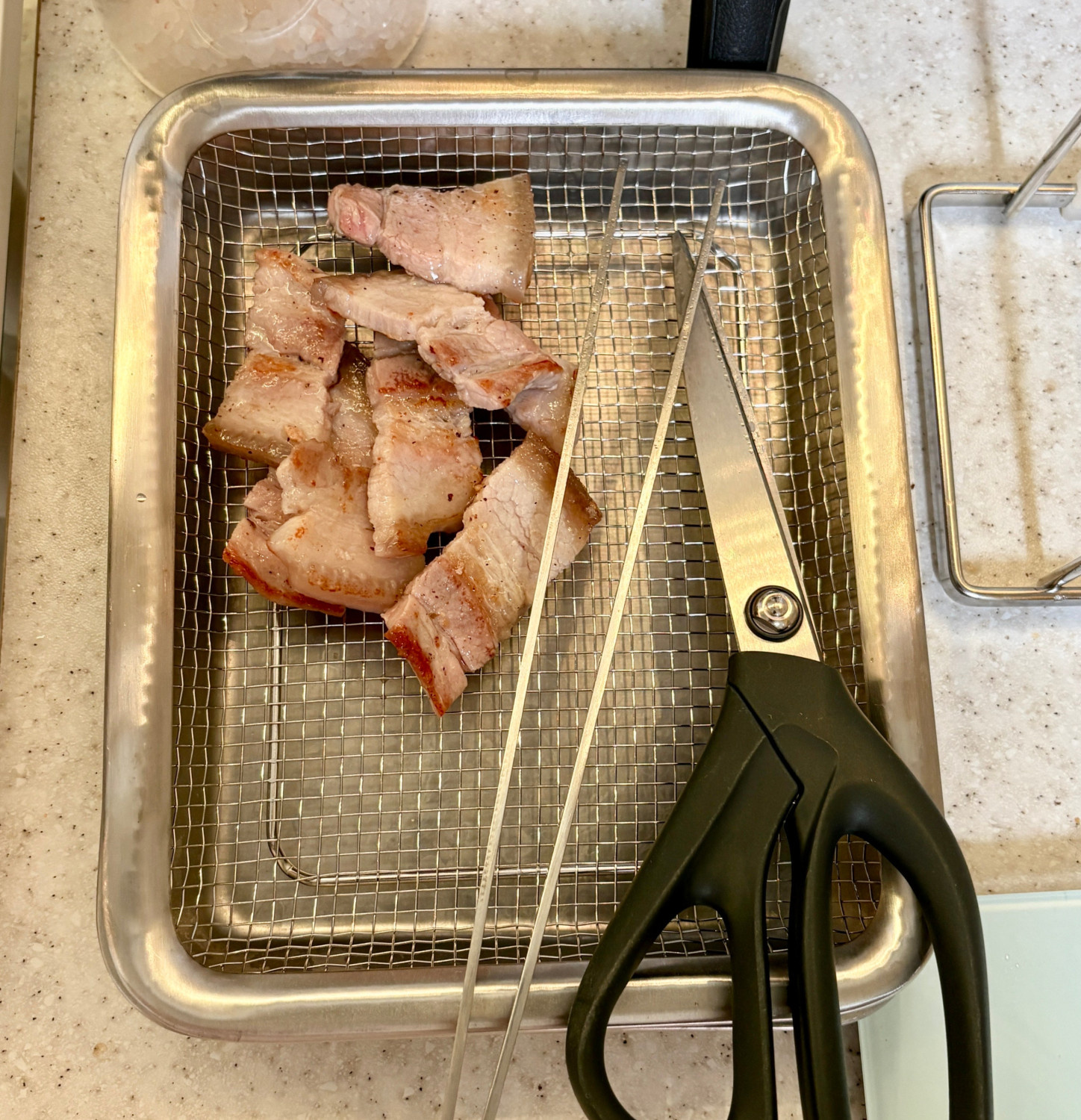 1. 삼겹살에서 나온 동물성기름과 올리브오일이 섞이면 풍미가 좋아져요.