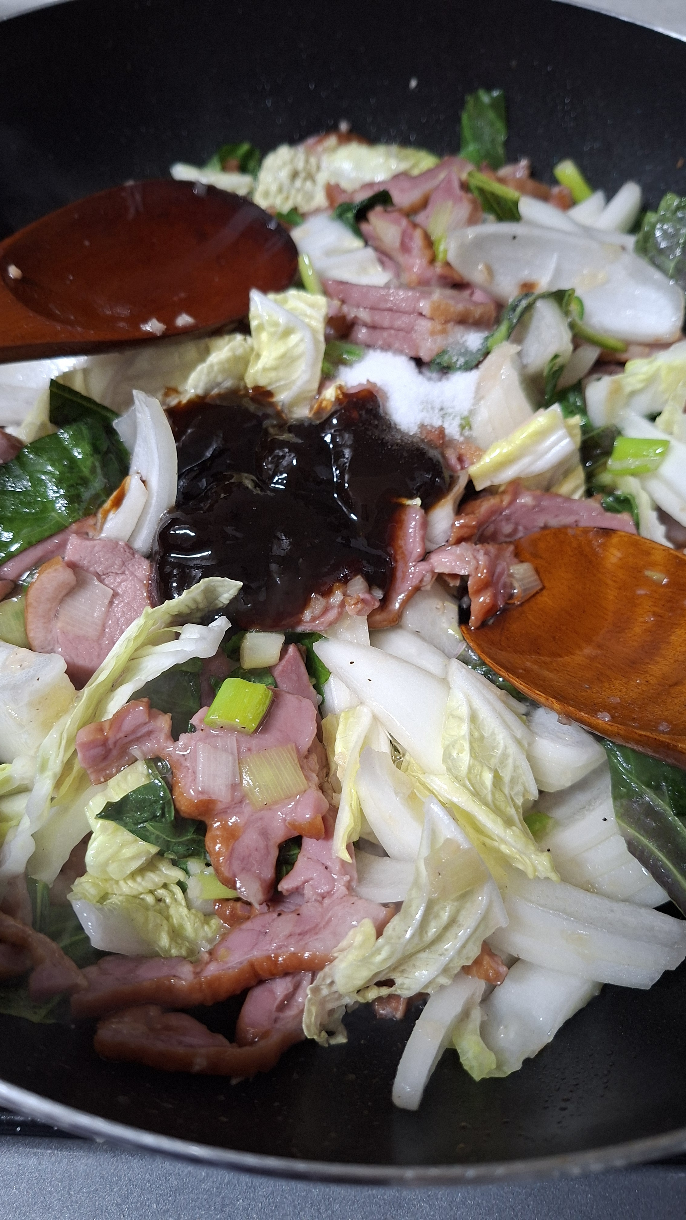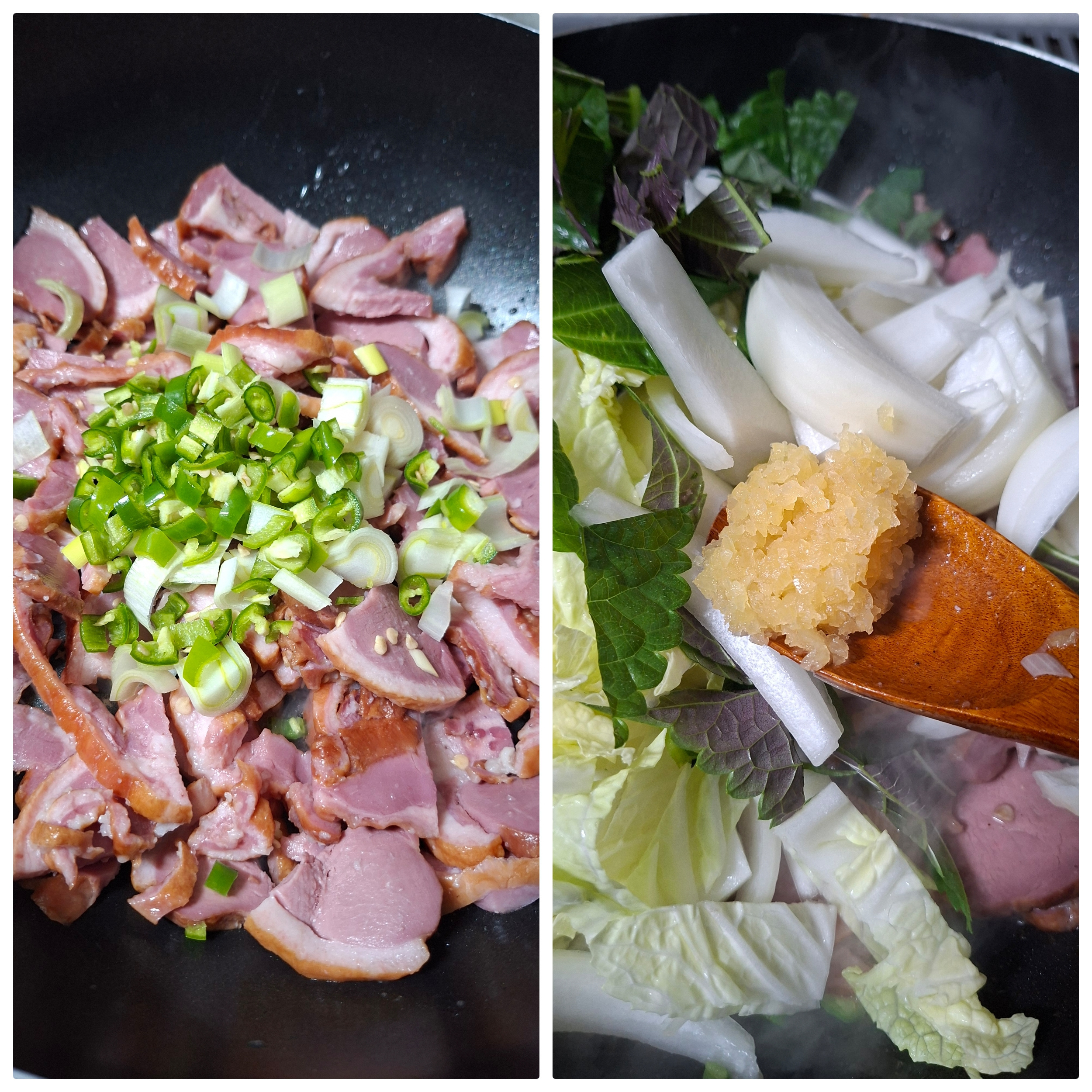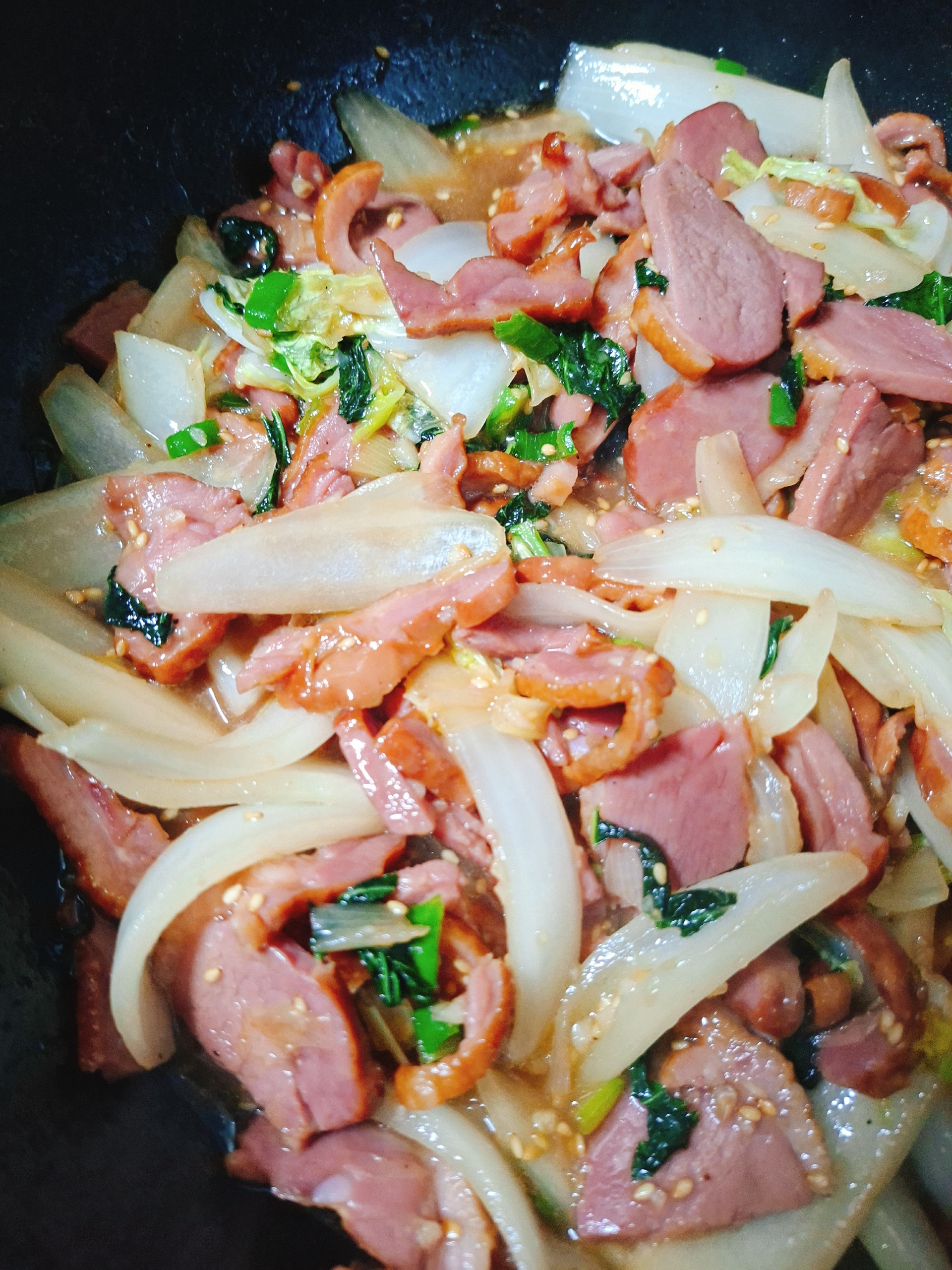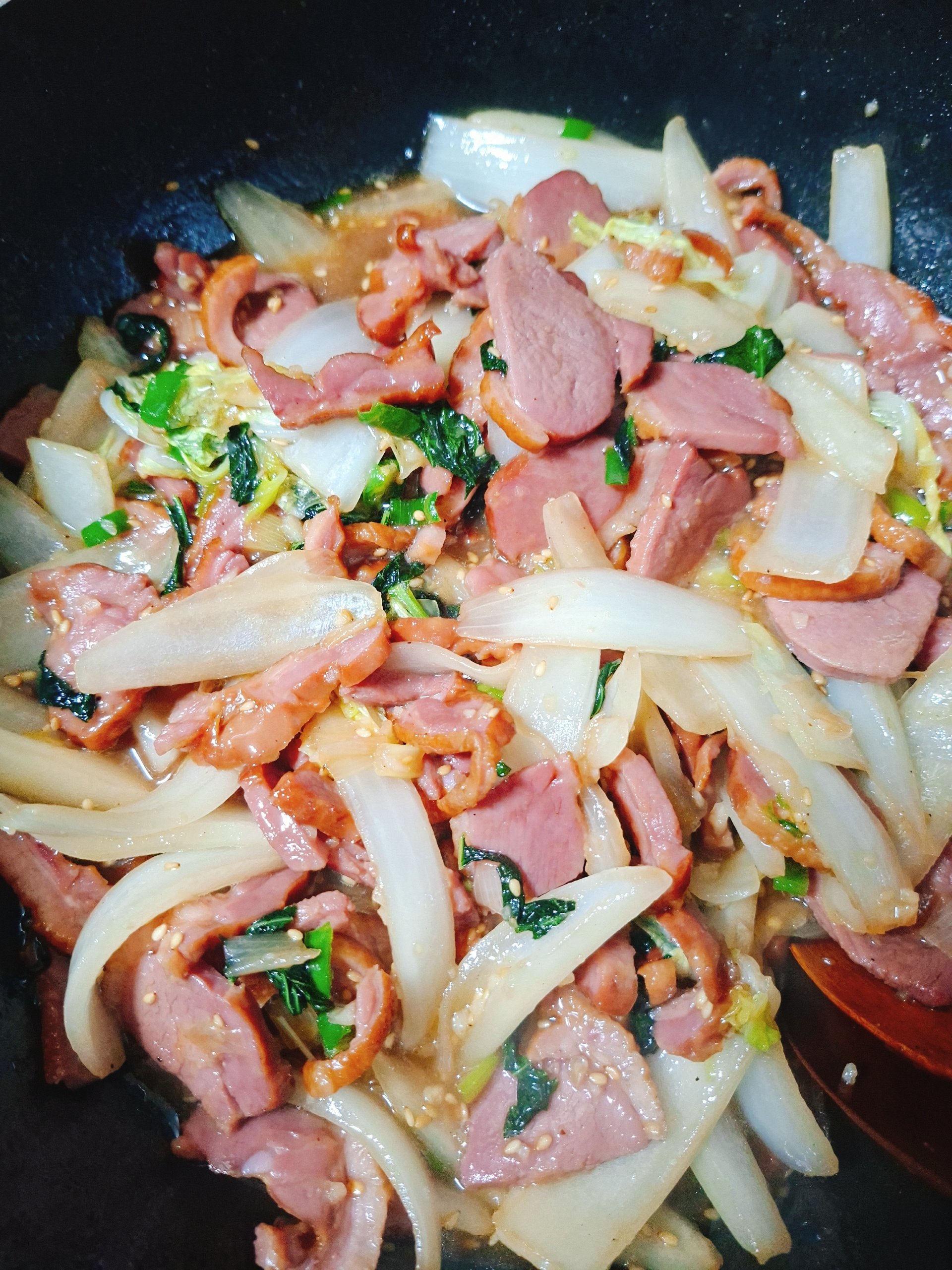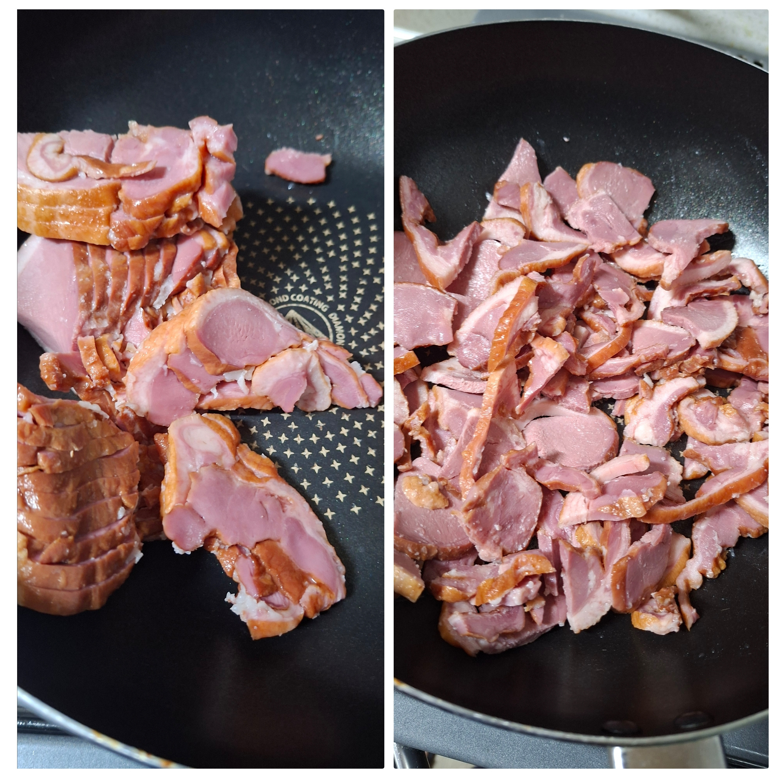 슬라이드된 훈제오리고기에 채소를 섞어서 간단하게 볶아봤어요 술안주,어린이반찬으로 휘리릭 만들기에 딱 좋아요