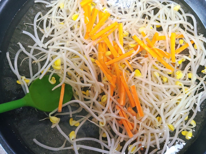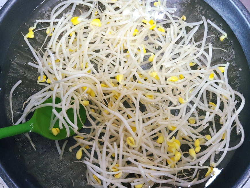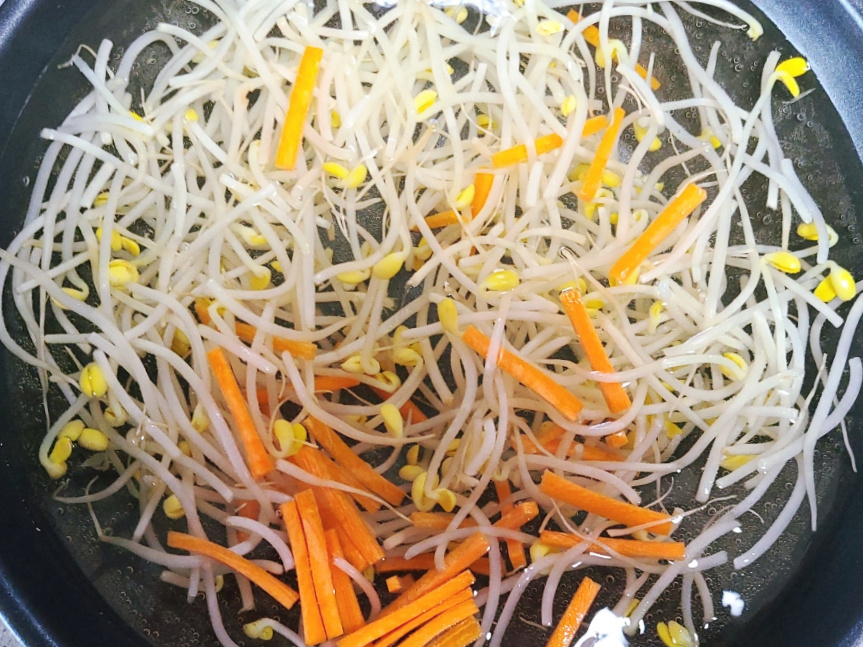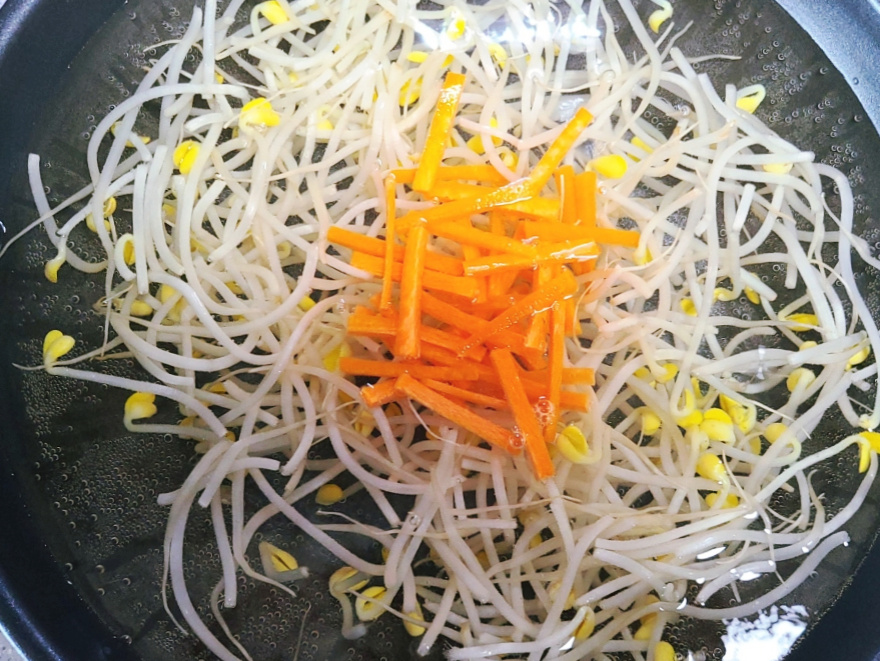 (콩나물 삶는시간은 2분 30초~3분 정도 삶아주면 아삭하게 삶을 수 있지만, 콩나물 양과 가스불 화력에 따라서 삶는시간이 달라질 수 있으니, 물이 끓어오르는 시점을 기준으로 콩나물을 삶아주면 되세요)