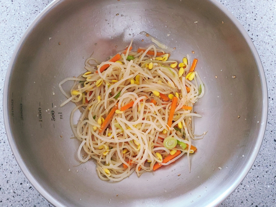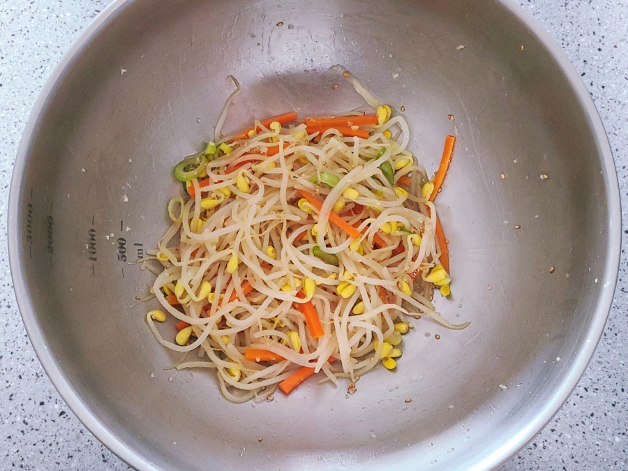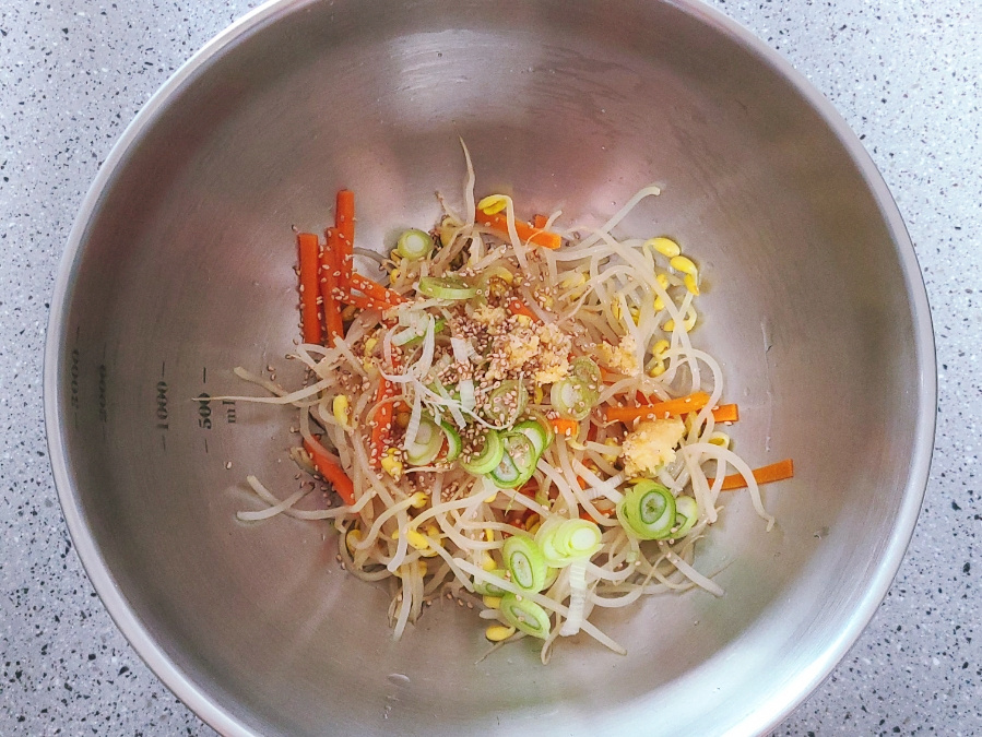 (아삭한 콩나물무침 레시피 드시고 싶다면 차가운 물에 세척하고, 고소한 맛으로 드시고 싶다면 삶은 후 그대로 물기만 털어내고 콩나물무침을 만들면 되세요)