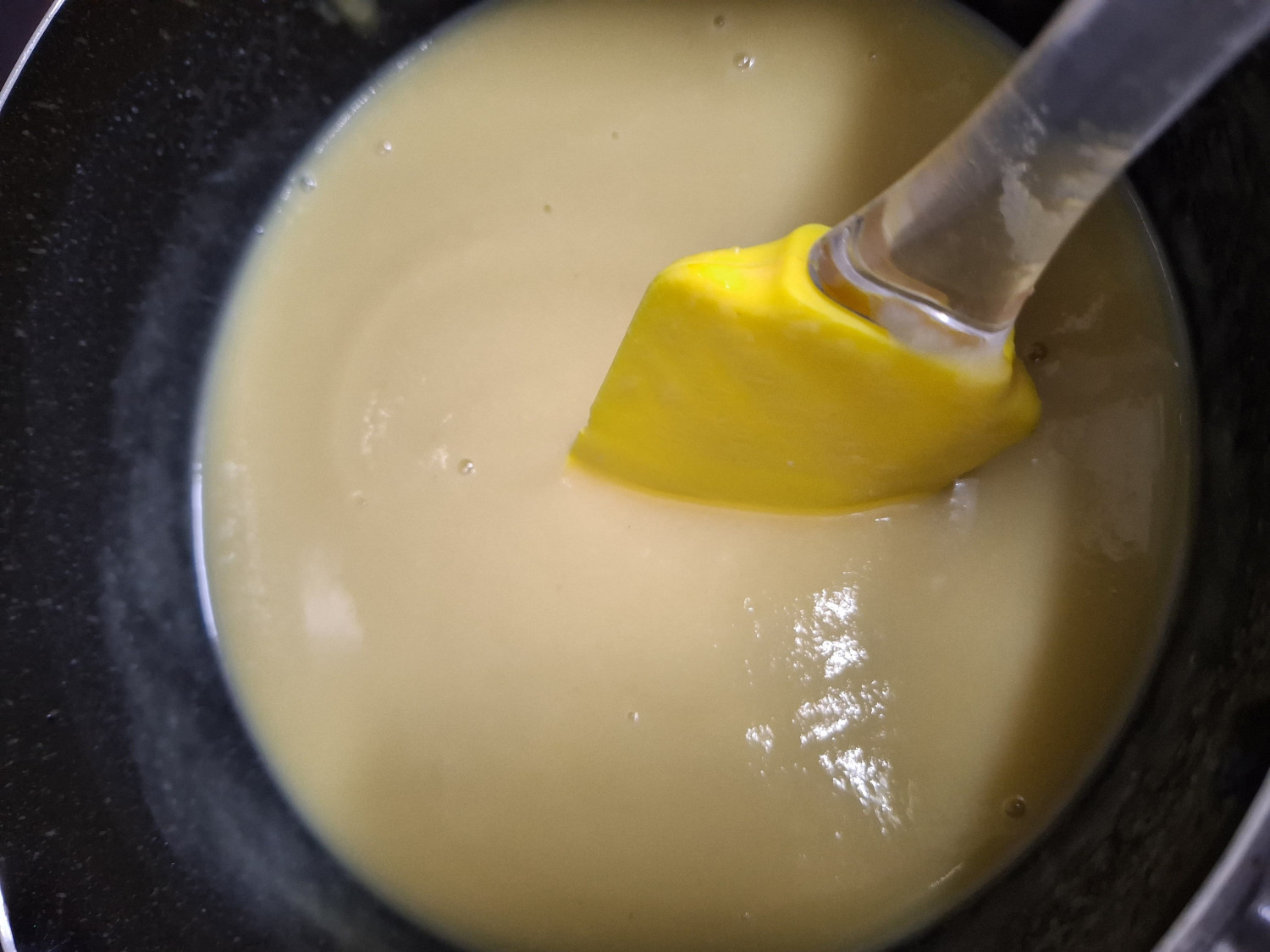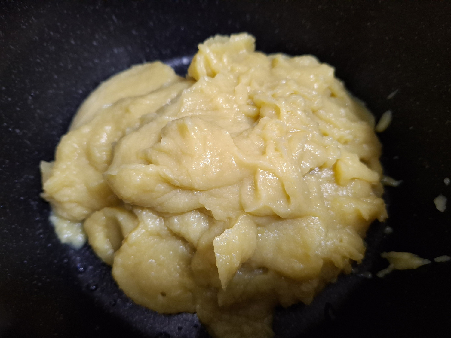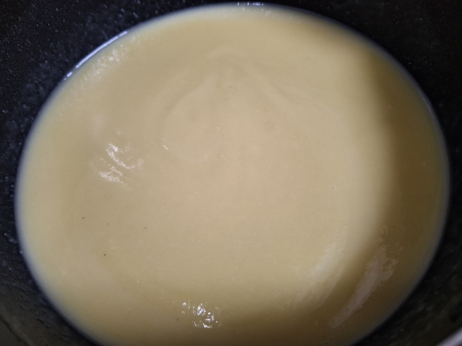 체에 한번 걸러준 고구마 퓨레를 다시 냄비에 담고요.