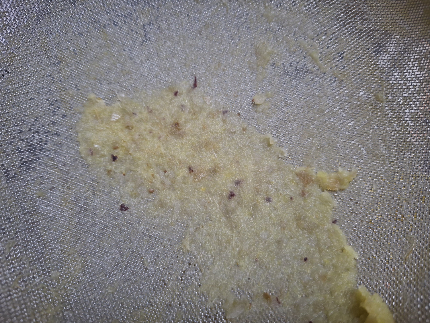 제대로 갈리지 않은 고구마 섬유질을 걸러내는 작업입니다.