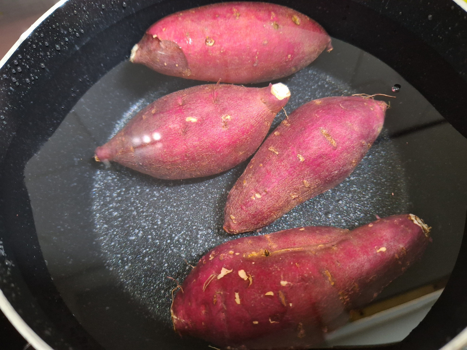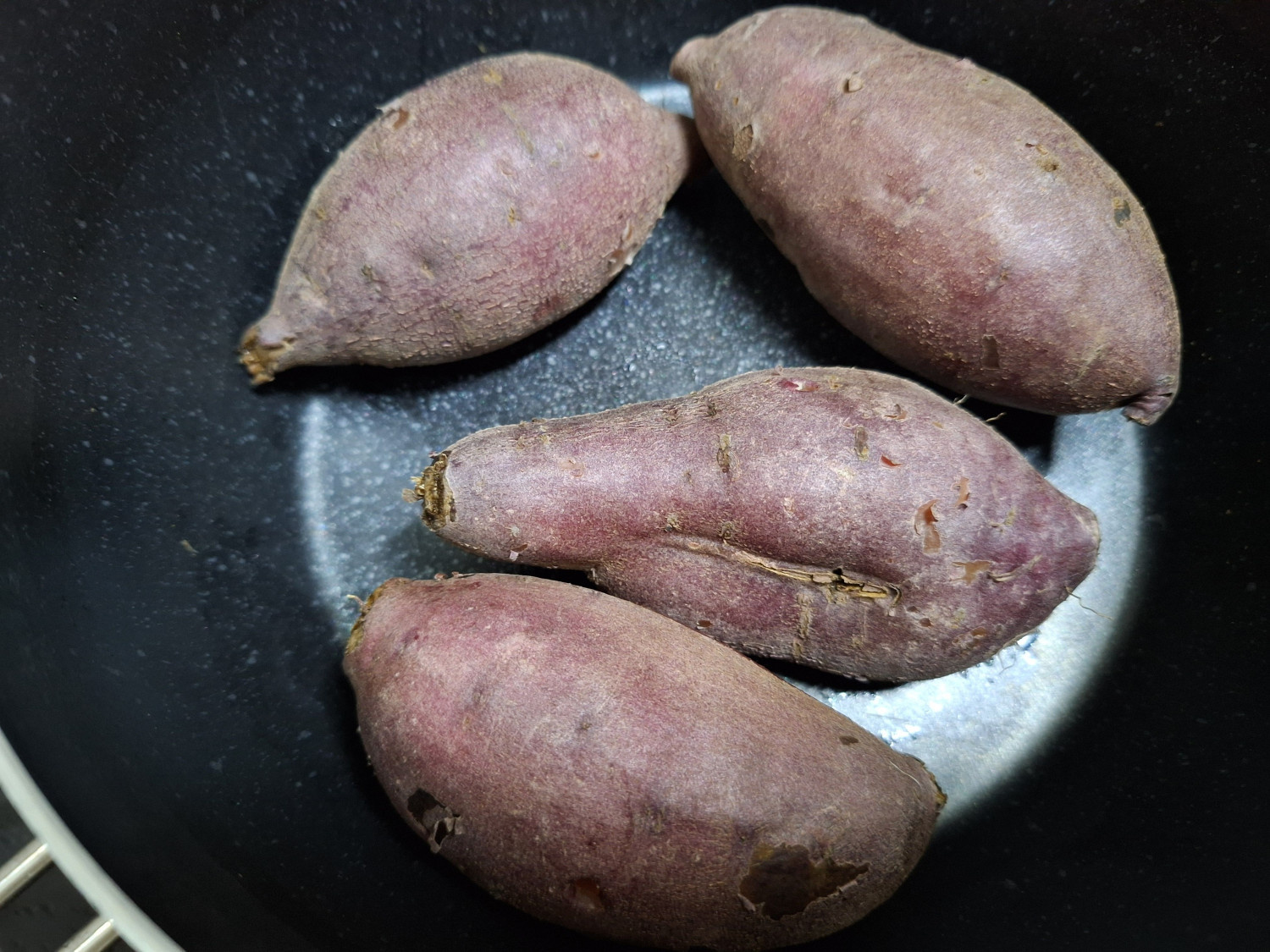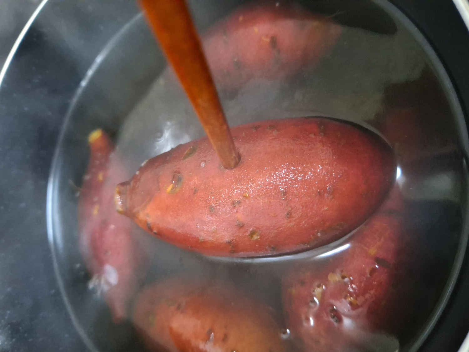 20분 후에 젓가락으로 가장 뚱뚱한 고구마를 찔러보세요.