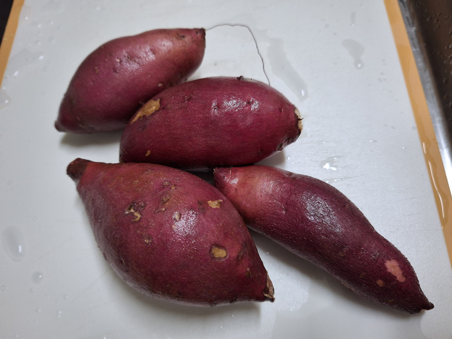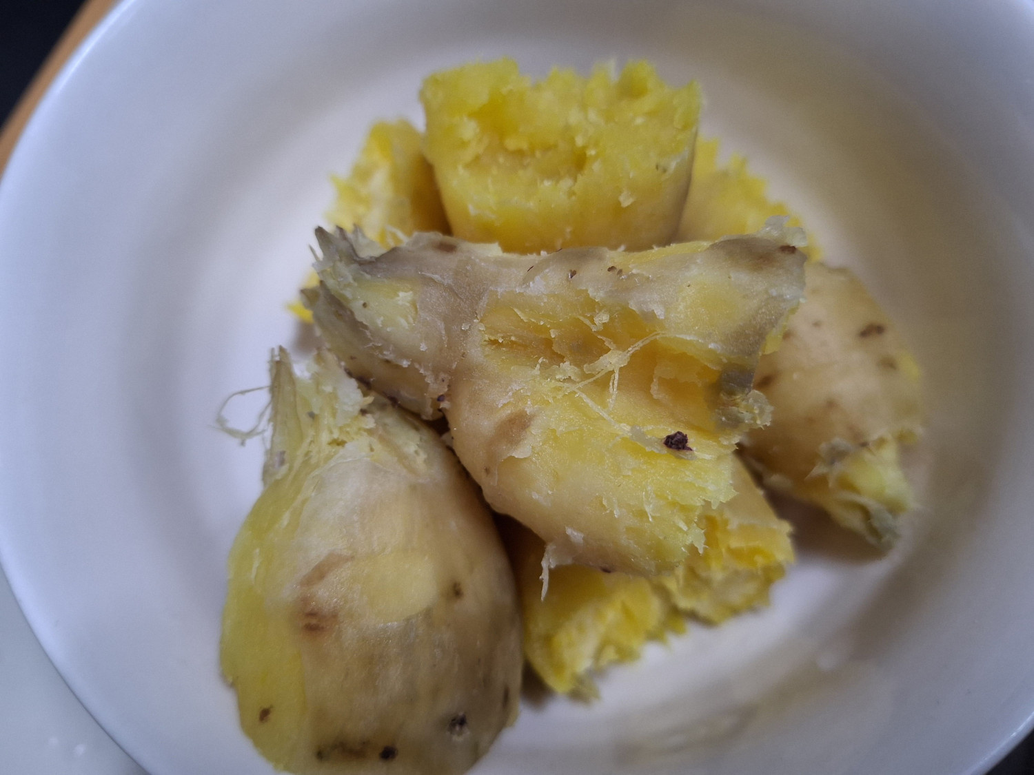 잘 삶아준 고구마는 껍질을 벗겨주세요.
