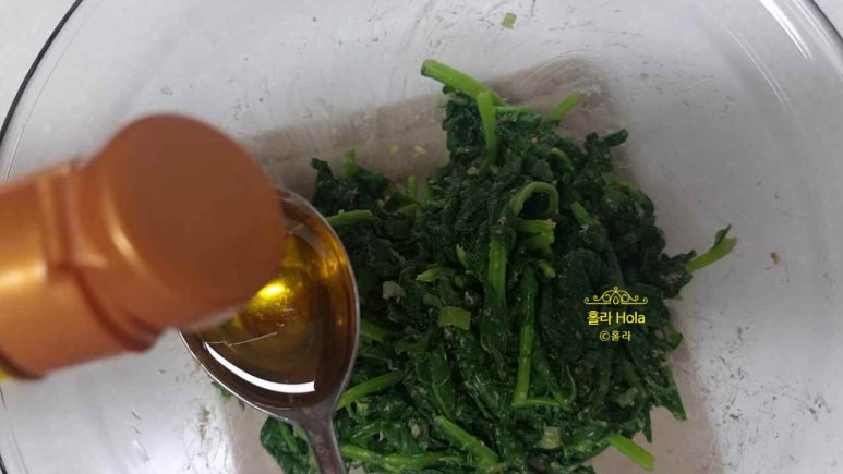 참고로 원래 유채나물 레시피에는 참기름으로 무쳤지만, 저는 들기름으로 무쳤어요.