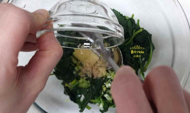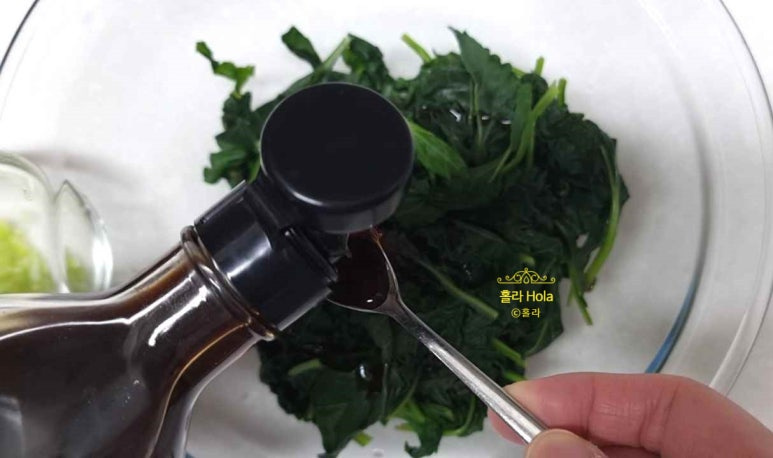 국간장 2-3 t , 다진 대파 1 T , 들기름 1 T , 다진 마늘 1 t , 미림 1 T , 깨소금 1 t , 통깨
