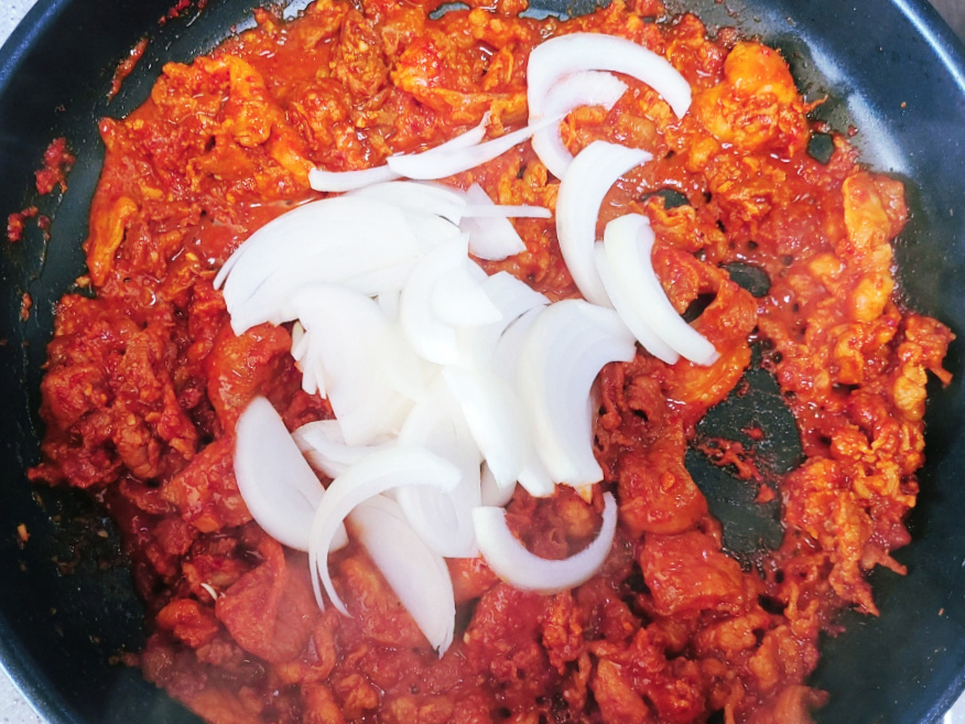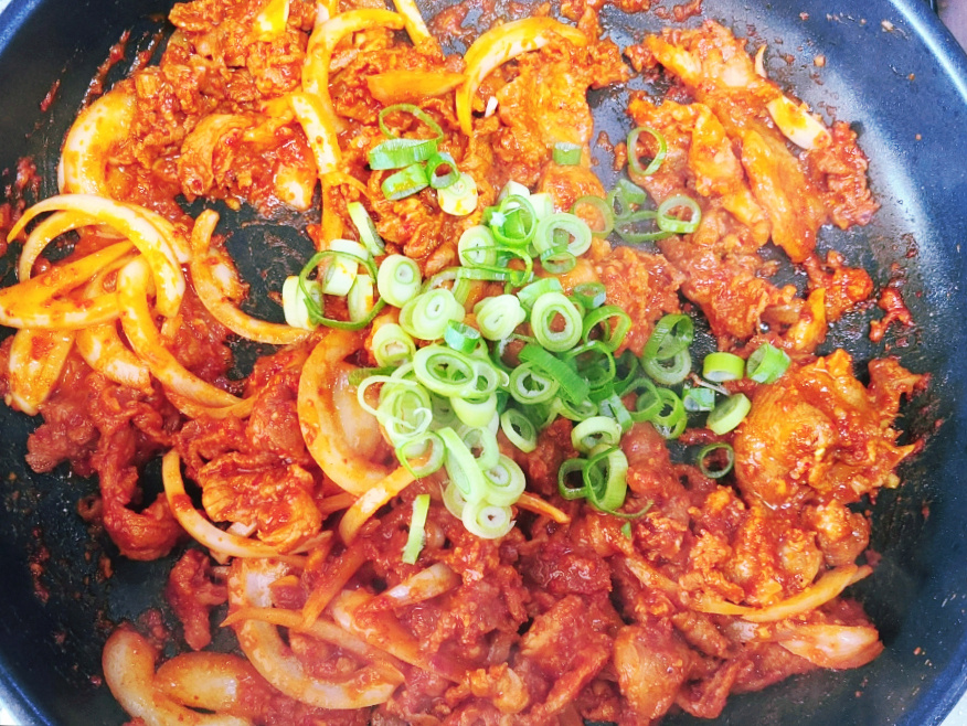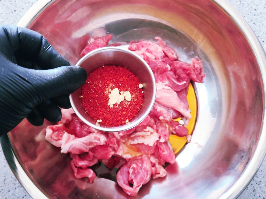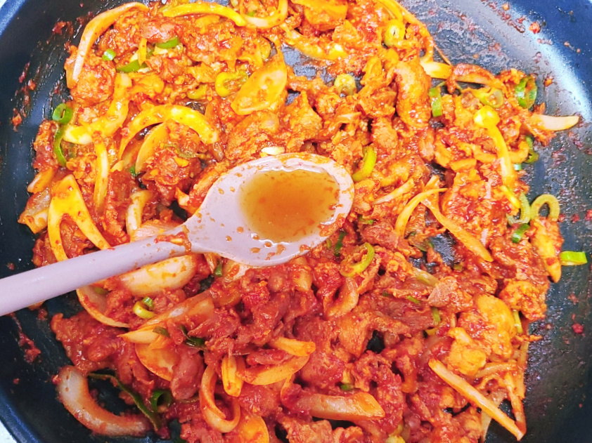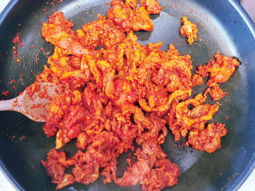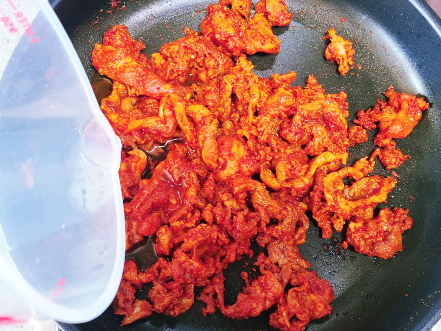 ▶고기를 볶을 때 물을 조금 넣고 볶으면 촉촉하고 부드러운 제육볶음을 드실 수 있어요.