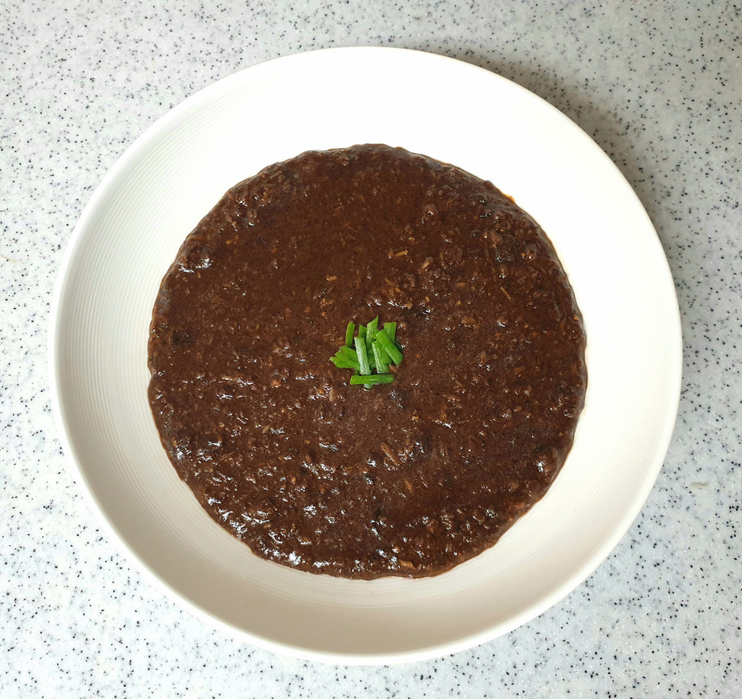 연하곤란으로 입자가 큰 음식을 먹지 못하는 사람을 위해 특별히 만든 짜장 소스.