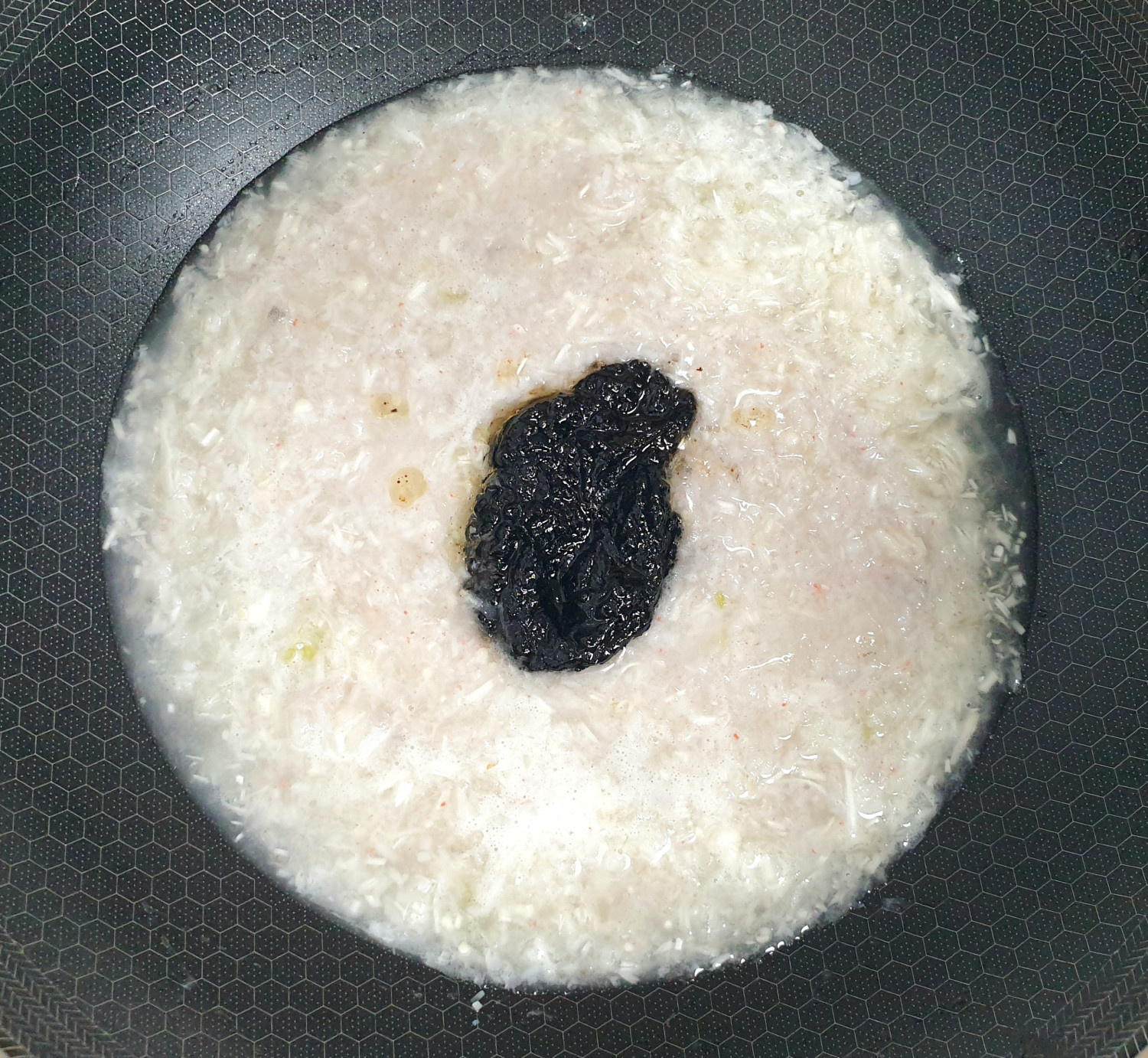 맛은 살리고 식감은 부드럽게 만든 새우 짜장 소스.