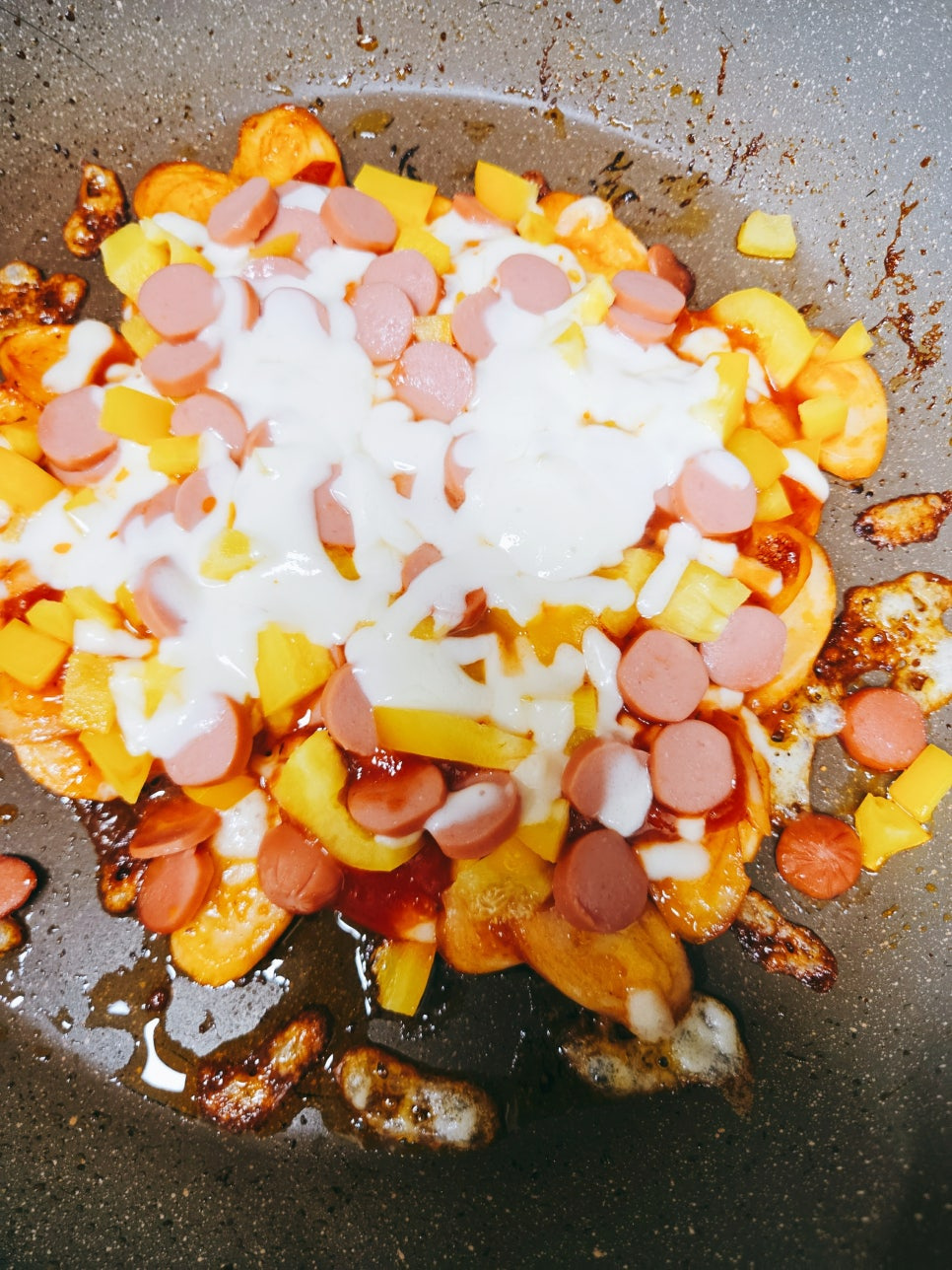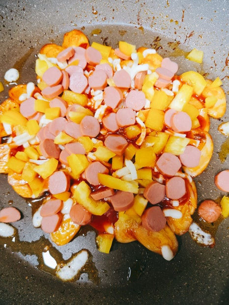 만드어 볼려고 했는데 고정이 잘안되서 볶음요리 처럼 만들어 버렸어요 ㅋㅋㅋ