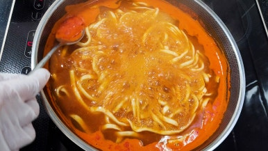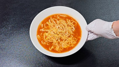 황금조합 비법양념 가루로 장이 들어간 듯 얼큰 시원한 장칼국수가 완성됩니다.