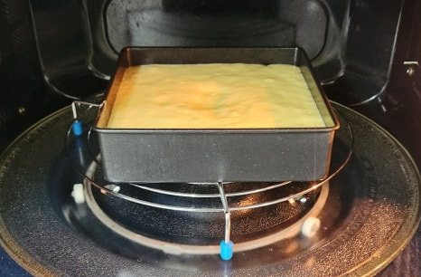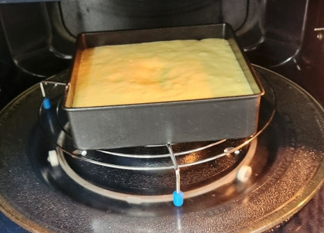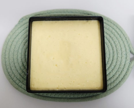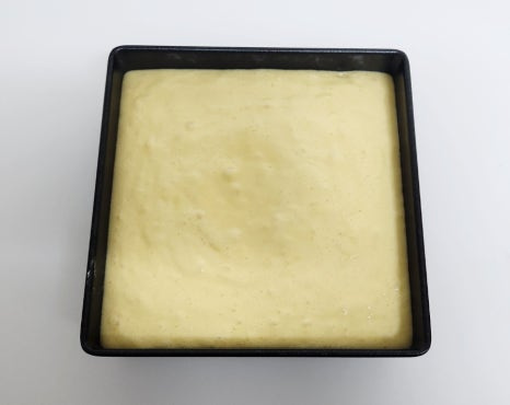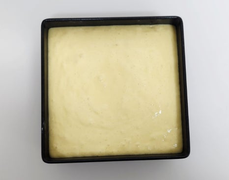 잘 만들어 놓은 반죽을 오븐 틀에 붓고, 탁탁 쳐서 윗면을 평평하게 만들어 주세요.
