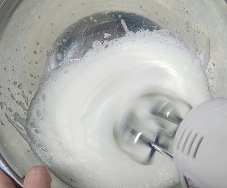 깨끗한 볼에 계란 흰자 4개를 넣고 거품기를 돌려서 휘핑해 주세요. 너무 오래 휘핑하지 말고 어느정도 적당히 휘핑해 주세요.
