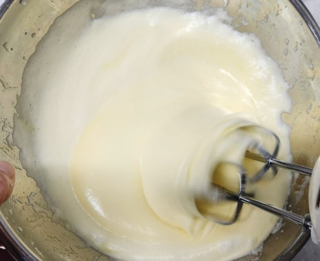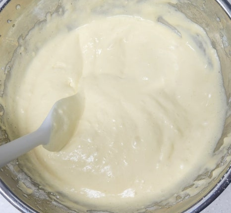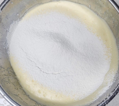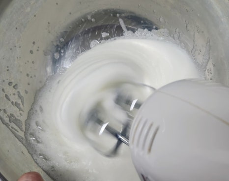 거품이 죽지 않도록 주걱으로 아래에서 위로, 썰듯이 천천히 섞어주세요. 그냥 막 섞어 버리면 공기가 빠질 수 있으니 주의해 주세요.