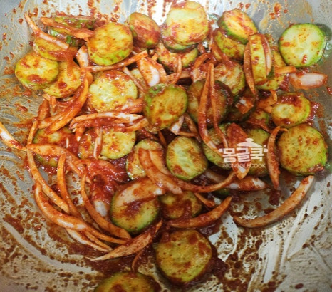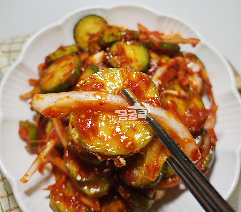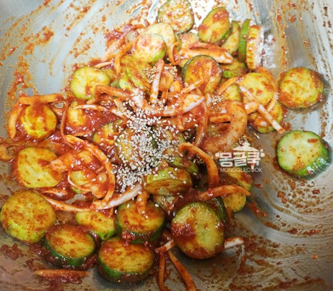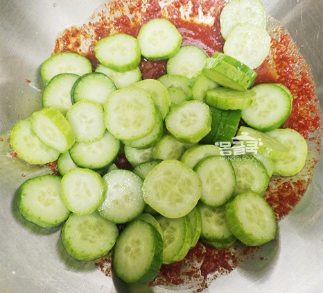 새콤달콤한 양념이 오이 특유의 신선함을 제대로 살려줘요.