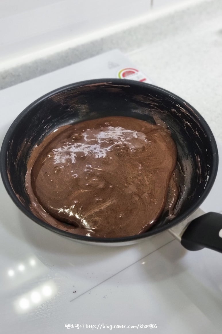 마쉬멜로가 전부 다 녹기전 덩어리가 약간 남아있을때 불을끄고