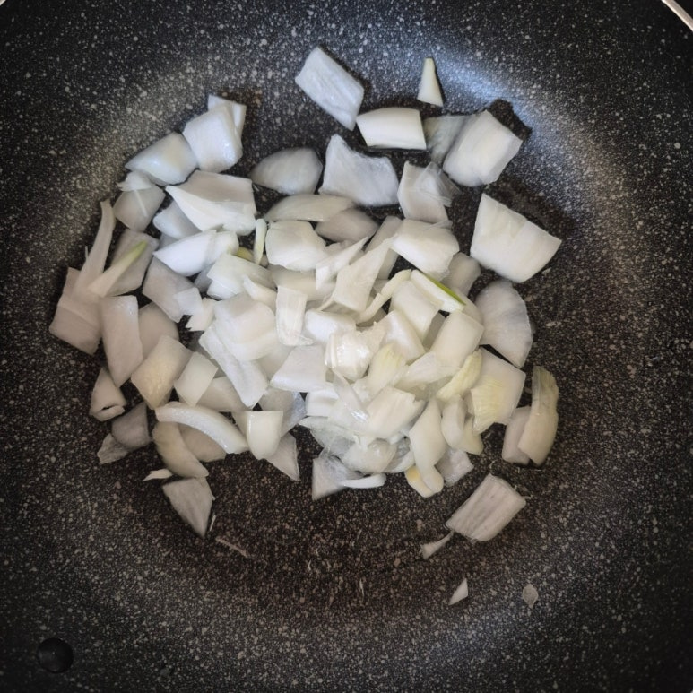 다진 김치 200 g , 양파 1/2 개 , 간장 1 큰술 , 참기름 1 큰술 , 김가루 약간 , 밥 2 공기 , 식용유 1 큰술
