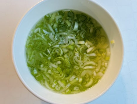물에 담가 대파의 매운 맛이 전혀 없으니 생대파라도 위장에 부담감이 없고 대파의 알리신 성분이 감기 예방에 좋은 야채라서 겨울 건강에도 좋은 요리예요.