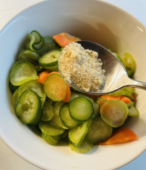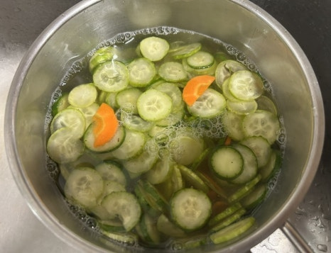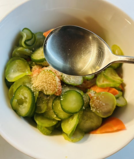 시장에서 작은 겨울 오이를 사와서 오이 무침을 만들었어요.