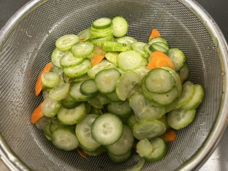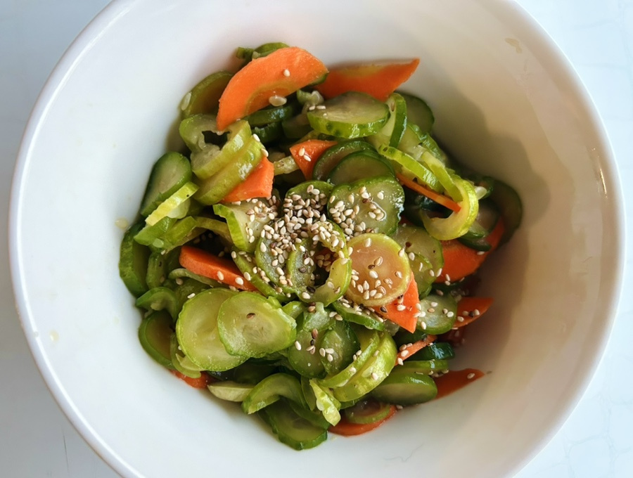 초록의 아삭한 오이가 산뜻한 양념과 산뜻한 오이와 조연처럼 제역할 톡톡히 하는 당근을