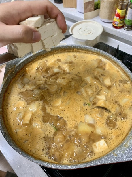 ✔️된장과 청국장을 1:1 비율로 넣어 끓여주세요.