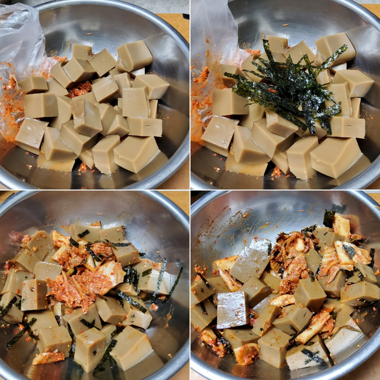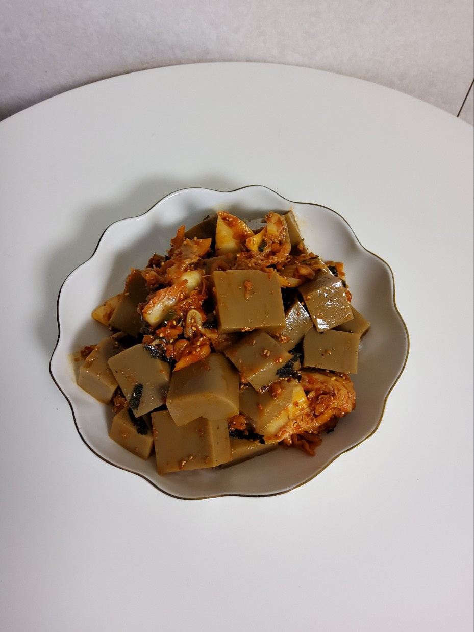 요즘 김장김치가 가장 맛있을때 딱 만들어 먹기 좋은 도토리묵김치무침입니다.