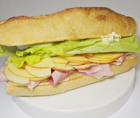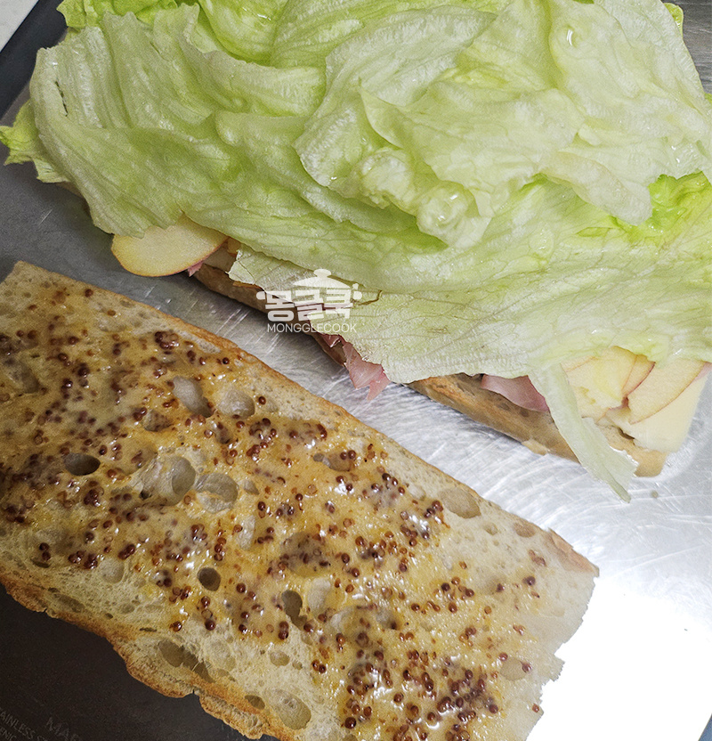 잠봉의 짠맛, 사과의 달콤함, 양상추의 시원함이 서로 잘 어울려 풍성해져요.