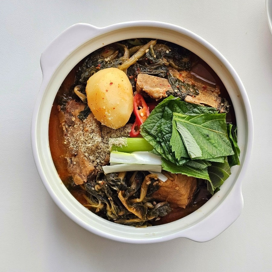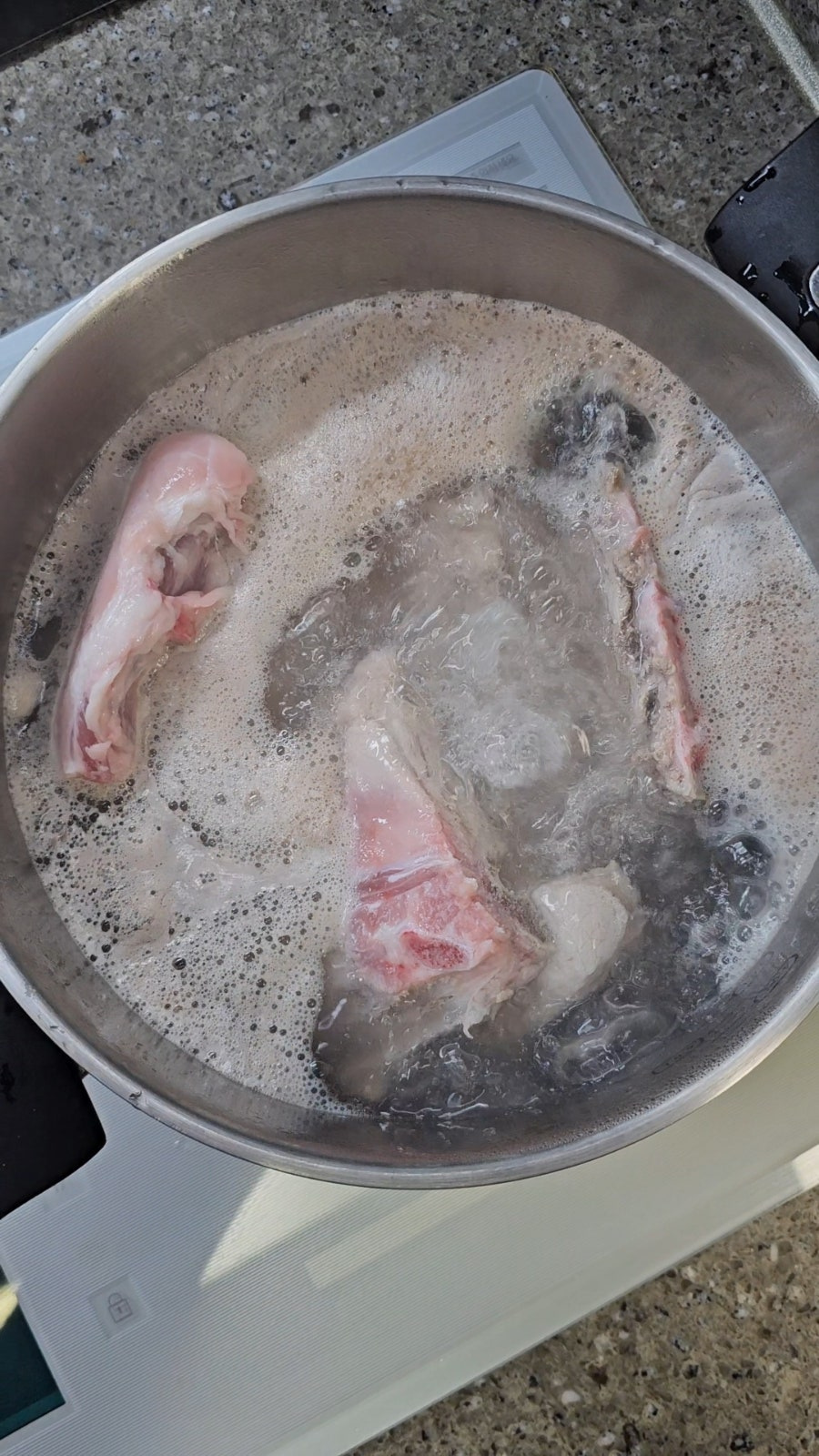 돼지등뼈는 찬물에 1시간 정도 담가 핏물을 뺀 후 냄비에 물과 함께 넣어 5분간 데쳐준 다음 미지근한 물에 씻어 주세요.