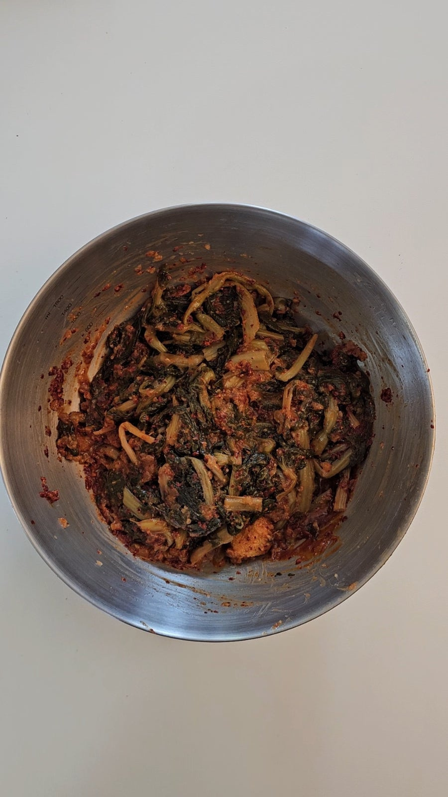 삶은 시래기는 물에 두세 번 헹군 뒤 먹기 좋은 길이로 잘라 주고 분량의 시래기 양념장 재료 : 국간장 2큰술, 맛술 2큰술, 들기름 1큰술, 다진 마늘 3큰술, 다진 생강 1작은술, 소금 1/2작은술, 후춧가루 약간, 고춧가루 3큰술, 고추장 1큰술, 된장 2큰술을 넣고 조물조물하여 양념을 해 놓습니다.