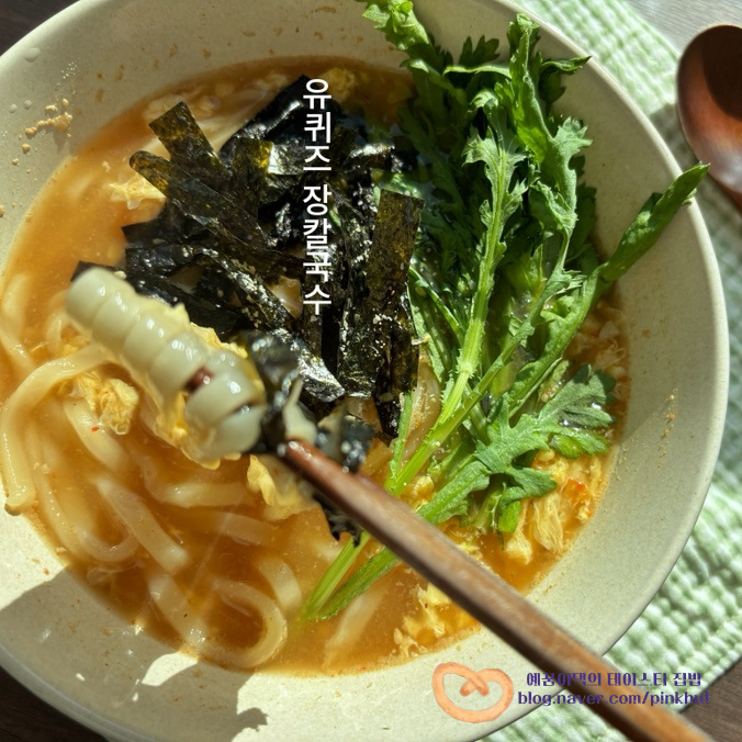 집에서 장칼국수 만들면 평범한 맛있음인데, 임짱 양념 비법이 들어가니깐 대박 맛집 칼국수 맛으로 완전히 바뀌었어요