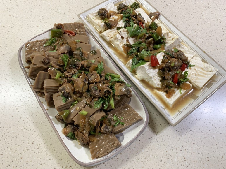 꼬막양념간장은 두부와 도토리묵 위에 양념간장으로 활용했고,