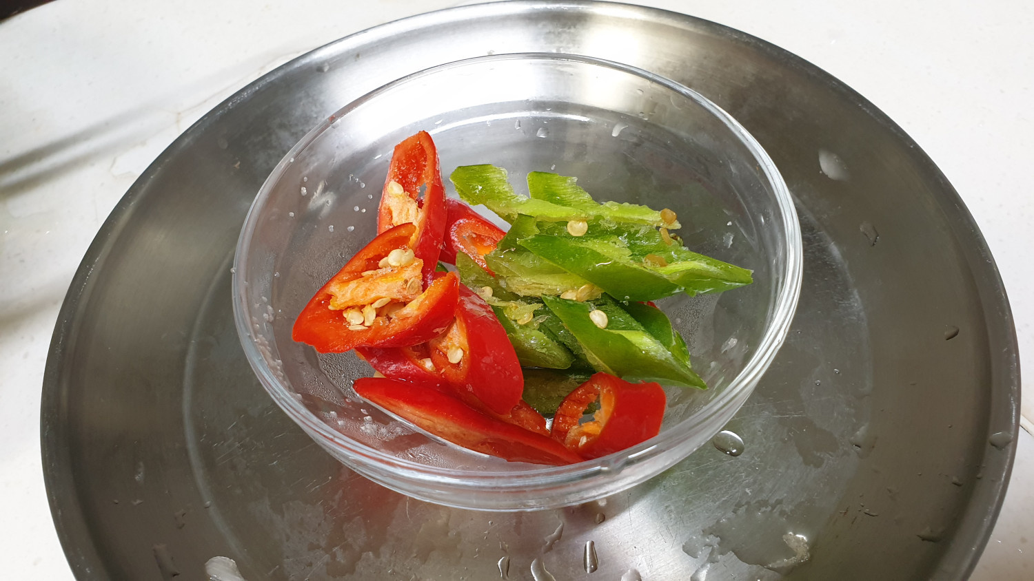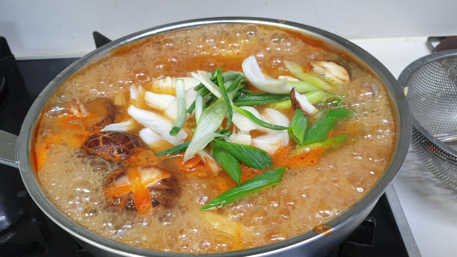 씻어서 넣으려면 달라붙거나 끊어질수 있으니, 넣기 직전에 짧게씻고, 넣자마자 바로 저어 주어요.