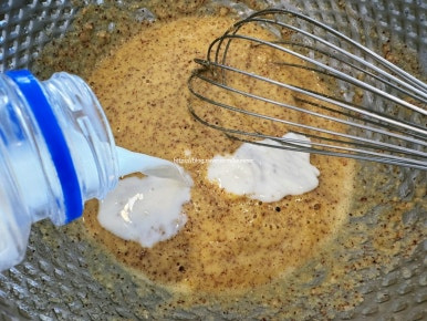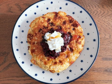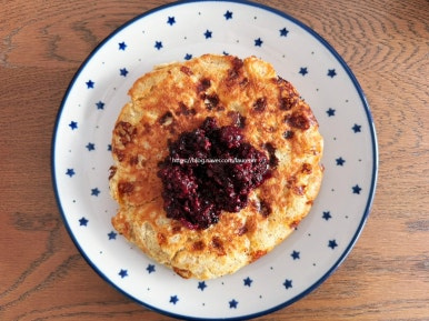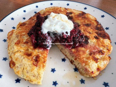계란 4개 , 아몬드 파우더 적당히 , 우유 조금 , 팬케이크 파우더 적당히 , 카리지 치즈 150g , 버터 적당히 , 블랙베리 잼 적당히 , 휘핑크림 적당히 , 메이플 시럽 적당히