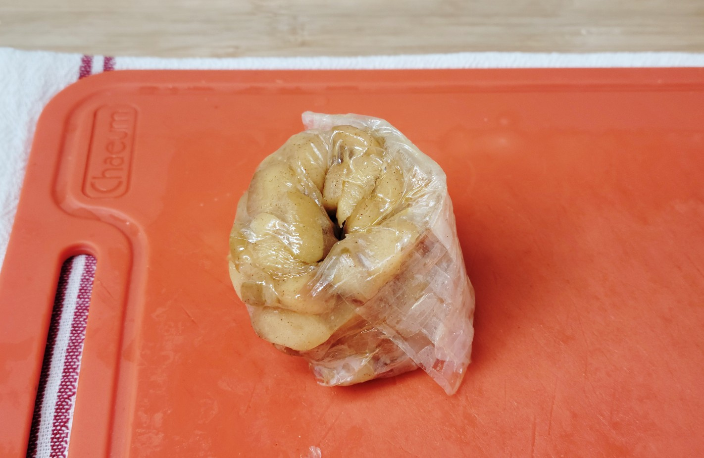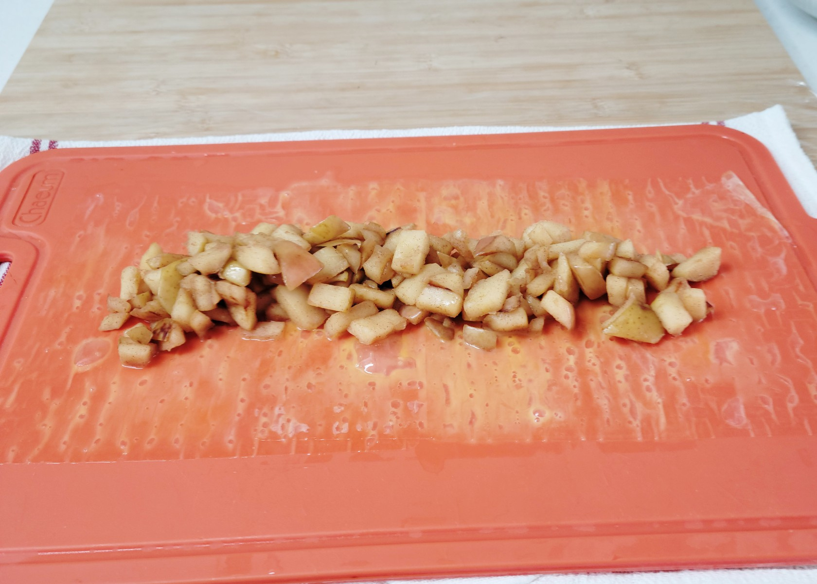를 겹쳐 사과 필링을 감싸