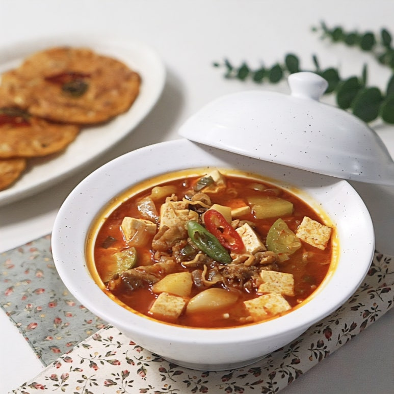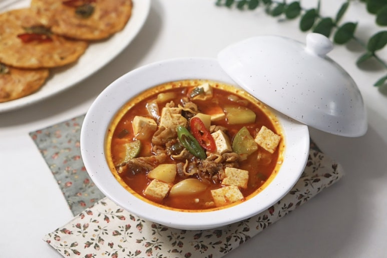 요즘 같은 날씨에 뜨끈하게 끓여 먹기 좋은 찌개 요리, 우삼겹 고추장찌개 레시피입니다. 고추장찌개는 고추장의 구수함과 우삼겹의 고소한 맛이 국물에 푹 스며들어서 밥 한 공기는 기본으로 비우게 되는 그런 요리죠?! 오늘은 고기 외에 냉장고 속 다양한 채소를 넣어 찌개의 균형을 맞추면서 영양도 충분히 챙길 수 있는 우삼겹고추장찌개 레시피 소개해 드릴게요 '◡'
