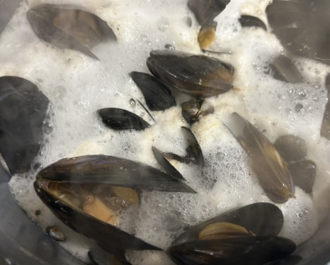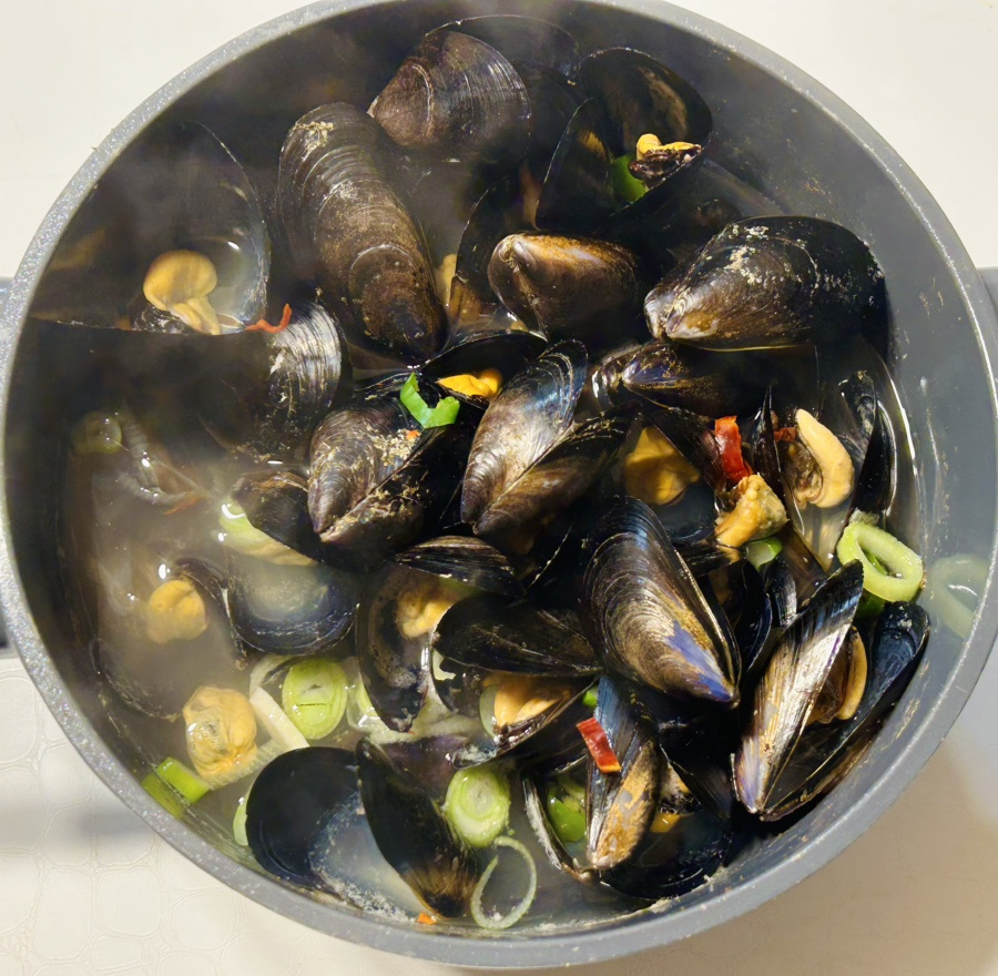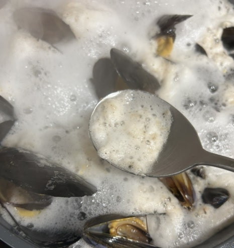 - 홍합이 껍질을 벌리면 완성이예요. 너무 오래 끓이면 홍합살이 쪼그라들고 질겨져요.