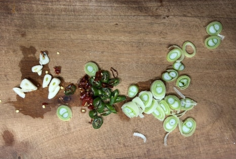 대파와 마늘, 청양고추 썰어 넣으면 매콤하고 시원한 국물이 완성되죠.