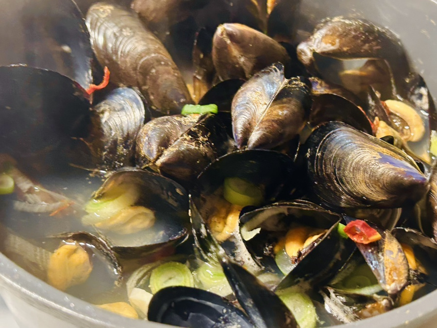 홍합은 가성비도 좋고 간단한 조리법으로도 맛내기 쉽고 조개류 치고 비린맛도 거의 없는 편이고 바다 윗쪽에서 매달려 자라기 때문에 모래가 없어서 해캄을 할 필요도 없어서 깔끔한 요리를 만들 수 있어요.
