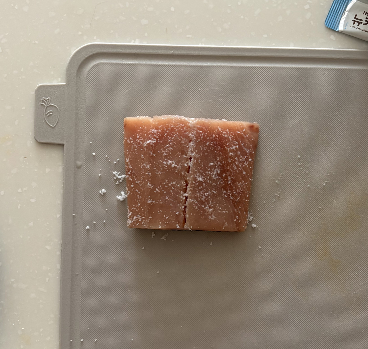 - 연어에 소금을 뿌려 10분간 밑간해주세요