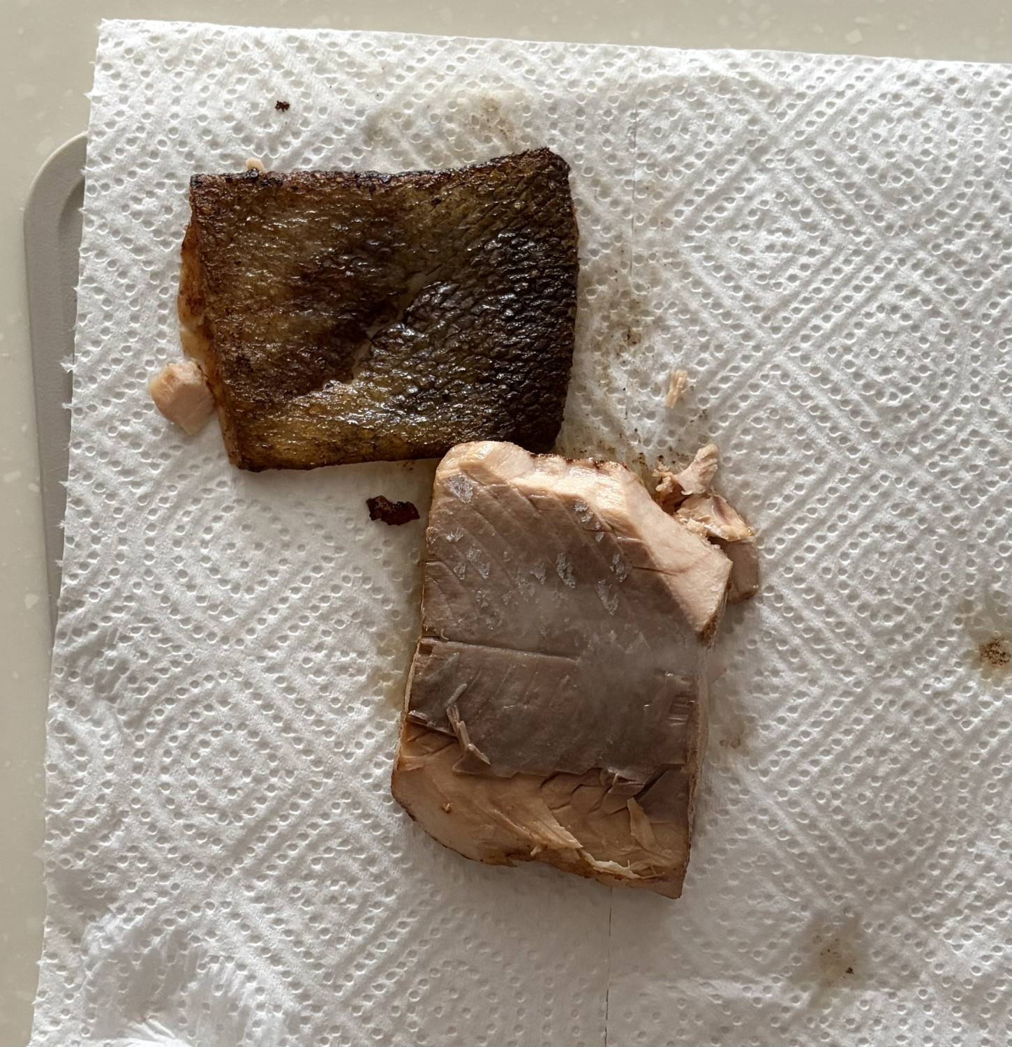 - 구운 연어의 껍질을 제거하고 연어살만 발라내주세요.
