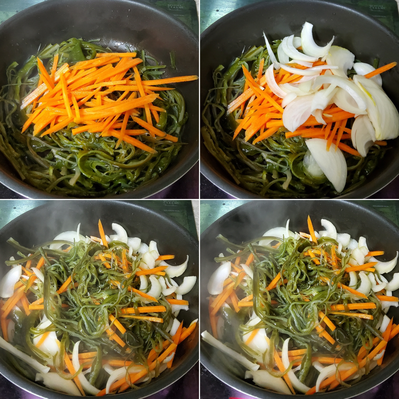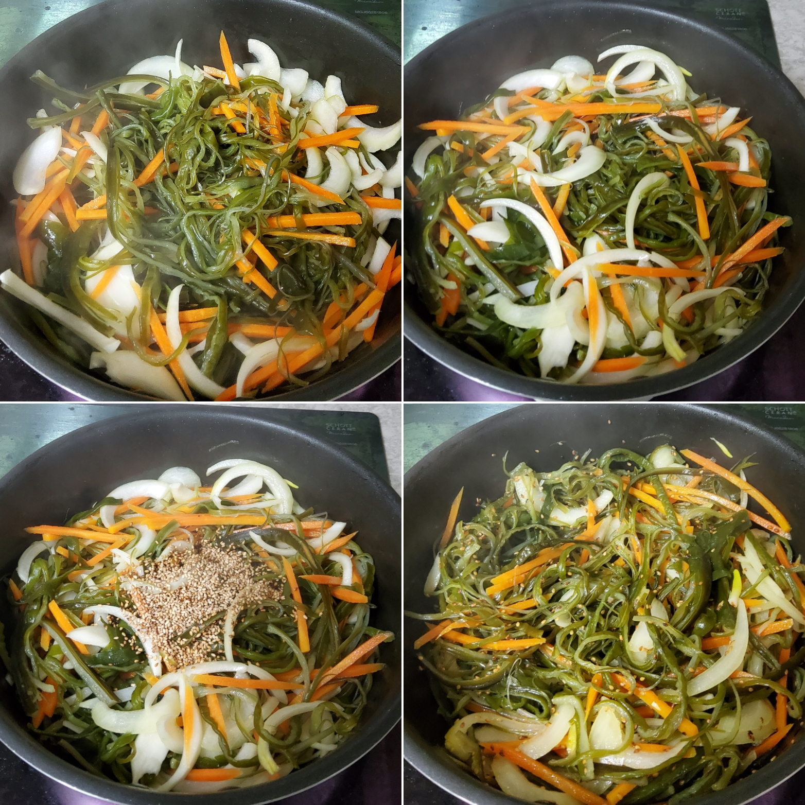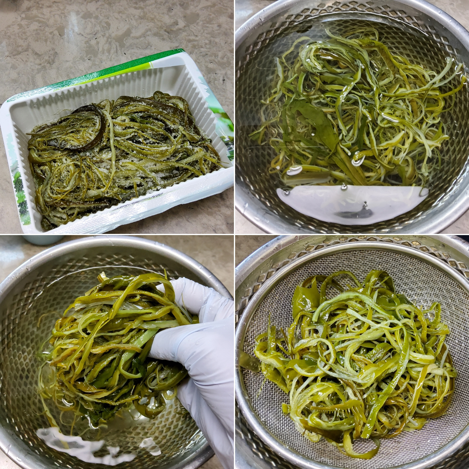 미역줄기의 소금을 충분히 제거하지 않으면 짤 수 있으니 여러 번 헹구는 것이 중요합니다.