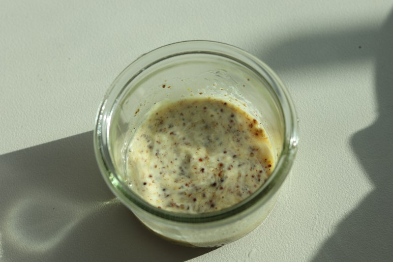 마요네즈 3스푼 , 화이트 발사믹(레몬즙) 1스푼 , 알룰로스(올리고당) 1스푼 , 홀그레인 머스타드 1/2스푼