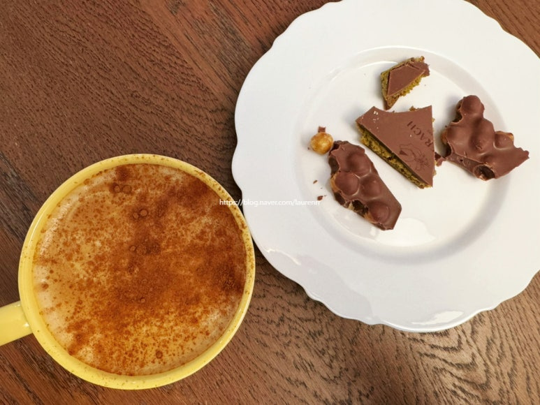 따뜻한 시나몬 카페 라떼와 초콜릿 타임 갖어 볼게요