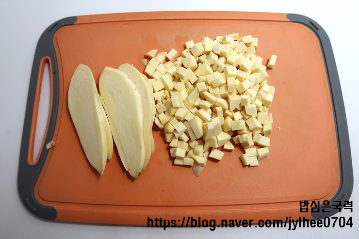큐브 모양으로 썰어주세요.