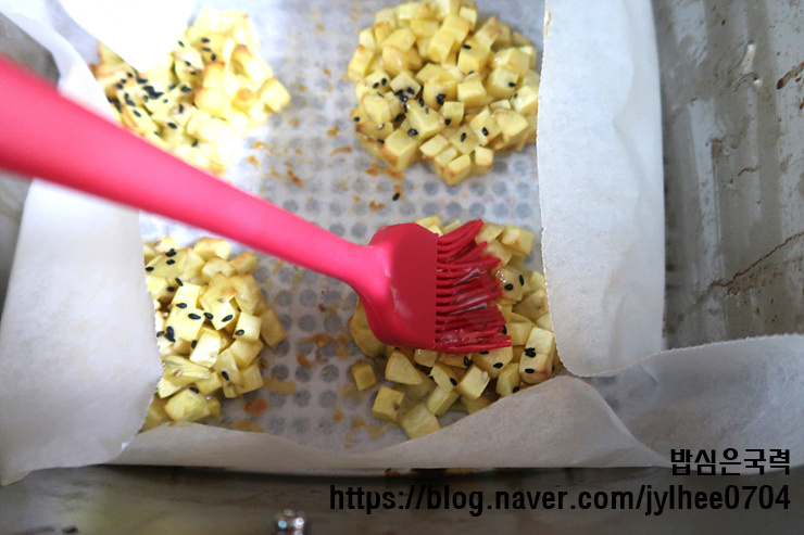 안녕하세요? 밥심은 국력입니다. 숏폼에서 보고 따라 해본 고구마 간식 레시피예요. 재료는 간단한데, 겉은 바삭하고 속은 쫀득해서 간식이나 아이들 간식으로 딱 좋았어요. 꿀을 발라 한 번 더 구워주니 달콤함이 살아나 계속 손이 가더라고요.